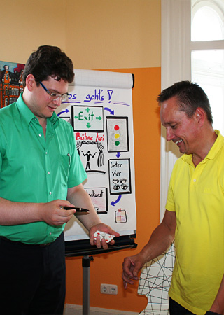 Zusammen mit seinem Zauberfreund Sven Spohler hat Dennis eine Workshopreihe ins Leben gerufen, die Führungskräften, Trainern, Projektmitarbeitern und allen anderen Geschäftsleuten die Grundlagen der Zauberkunst näher bringt.